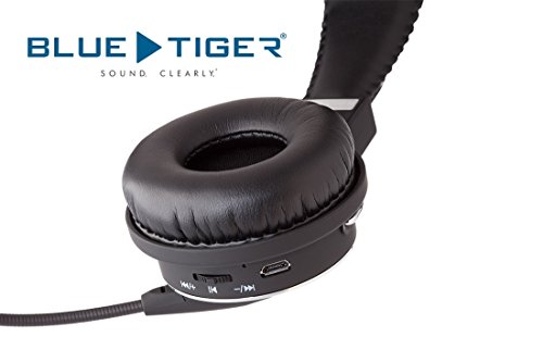 Blue Tiger Elite Bluetooth Headset- Over Head Driver Hands Free Wireless HD Noise Canceling Multiple Device Connect Loud Speaker Foldable Headphones Flexible Headband and Boom Microphone 34H Talk Time