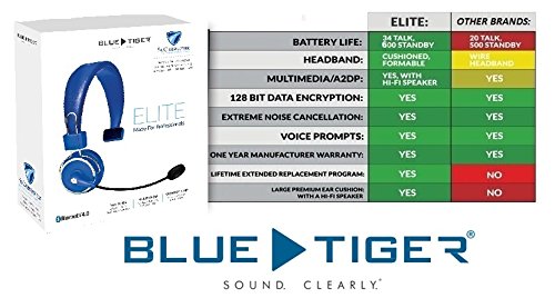 Long-Lasting Reliability: For your convenience, Blue Tiger's headsets built-in battery lasts for 34 hours of talk time and 600 hours of stand by time. Because it connects quickly to Bluetooth enabled devices, you're ready to answer any call virtually anytime, and anywhere