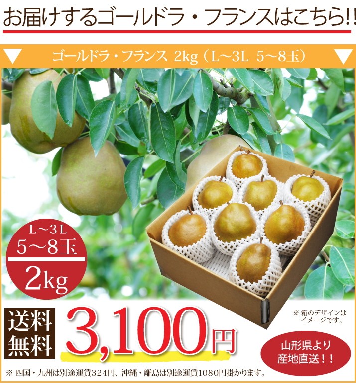 | 商品内容 | ■ゴールドラフランス秀品 2kg前後(L~3L / 5~8玉) ■産地:山形県 |