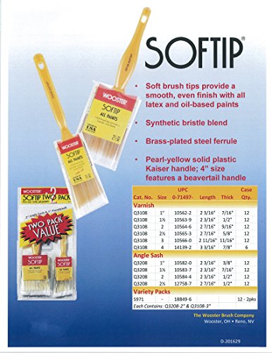 - Wooster, softip angle Sash, 2", nylon/polyester Paintbrush, chisel trim, brass plated steel Ferrule