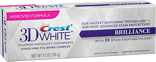 Brighten your smile with Crest 3D White Brilliance Vibrant Peppermint Whitening Toothpaste. It's 3D White's fastest whitening vs. Crest 3D White Toothpaste combined with the most advanced stain protection vs. Crest 3D White Toothpaste. It whitens your teeth by removing up to 95% of surface stains in 3 days. 3D White fluoride toothpaste also strengthens your tooth enamel and helps protect against cavities.Feature