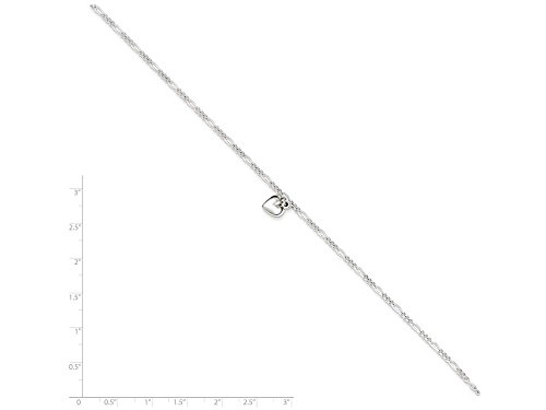 Sterling Silver Polished Heart W/ 1in Ext. Anklet