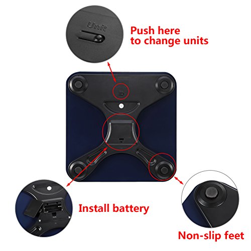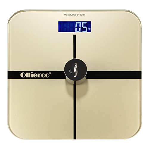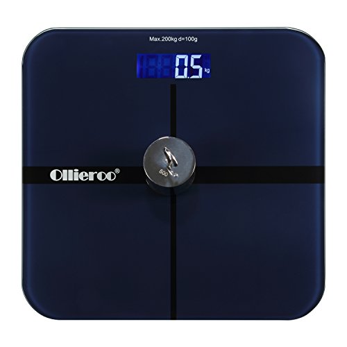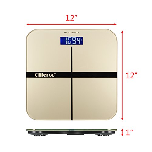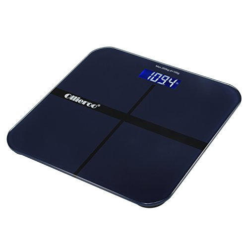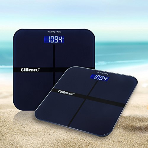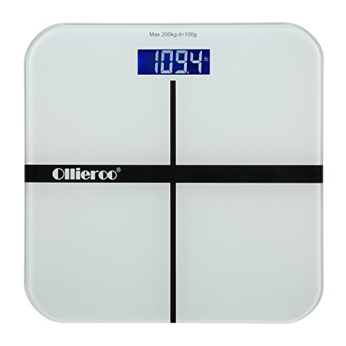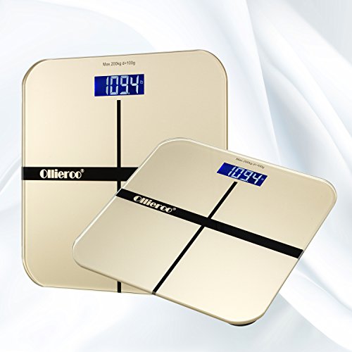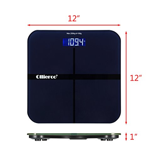 -. Title : Ollieroo Tempered Glass Precision Digital Bathroom Body Weight Scale with Blue LCD Display Smart Step-on 400lb Capacity