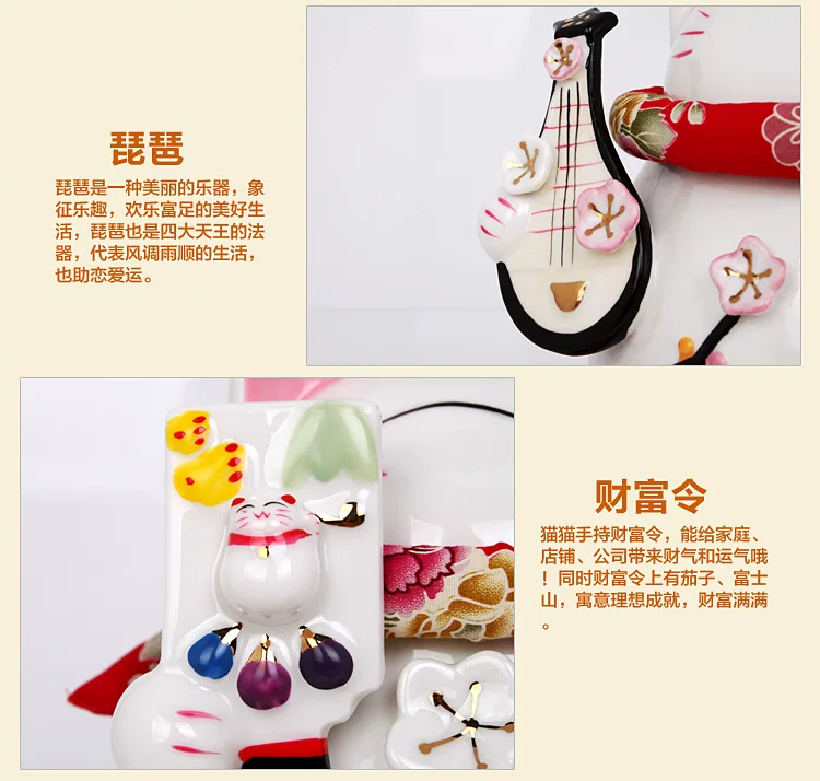 Lucky Luck Welcoming all year round all wishes come true. Lucky Cat Lucky raised his hands holding a bell, who has cherry, wisteria, chrysanthemums and morning glory four kinds of three-dimensional flowers, fine carving. Birthday, wedding gifts, home furnishings, store opening is a very good choice.