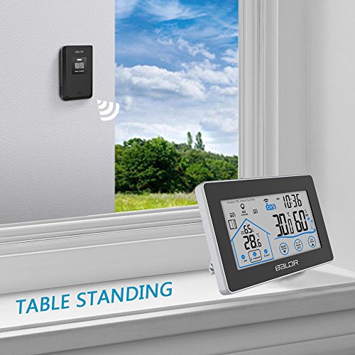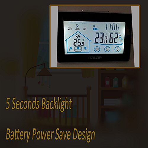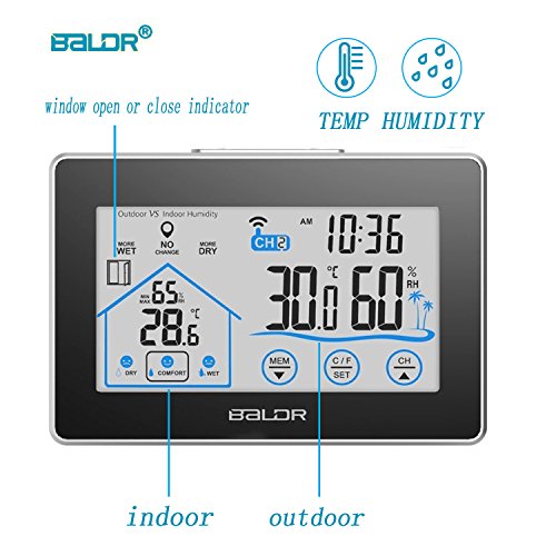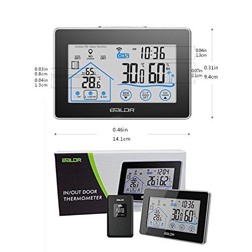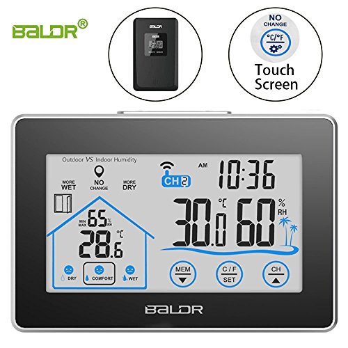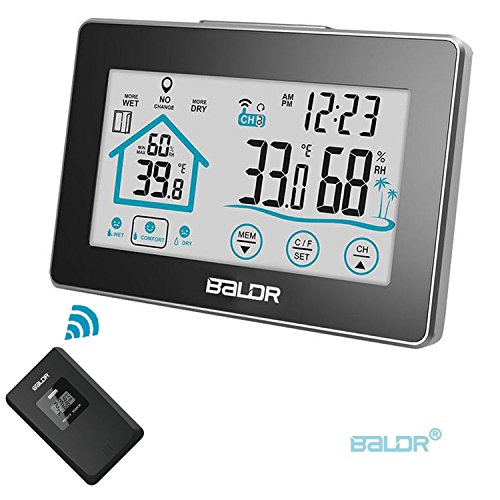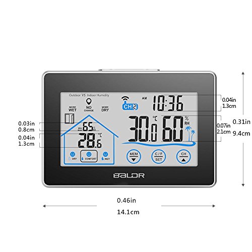 Studio : Homemelinda Publisher : Homemelinda Product Description This digital wireless indoor/outdoor temperature humidity meter weather station has three touch buttons. You can set everything just by touching the three buttons on the clock screen. A wireless remote sensor is included to detect outdoor temperature and humidity. You can touch the button to check Max/Min/Current Temperature and Humidity whenever you want. It also contains icons to remind you the humidity changes by more wet/no change/more dry. Comfort level indicator visually displays the comfort status. It is also a touch button LCD clock with temperature and humidity data. When you use it at night, you can press the light button on top. The white backlight will be lit for a few seconds so you can see clearly.