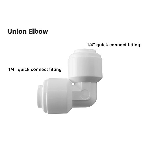 PureSec 2017 LTOB1414 mini white plastic quick fitting 90 degree Elbow Union Push Connector for tubing OD 1/4" used for RO system refrigerator ice maker coffee machine(Pack of 10)