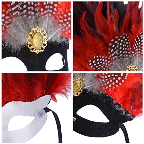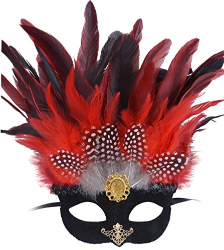 -. Brand : Kapmore -. Department : womens -. Feature : Type: Princess ,Queen, Crown with unique Indian style / That fancy luxury decorative mask is decorated with deluxe feathers / Comfortable, lightweight, universal-fitting design / Easy to adjust to face and with the straps to keep in position / Perfect for Halloween Christmas carnivals, masquerade, mardi gras, party ball prom , costume cosplay party ,fashion shows , wedding, mask events , night club and so on -. ProductGroup : Apparel -. ProductTypeName : APPAREL -. Title : Feather Masquerade Mask Halloween Costumes Mardi Gras Party Mask Cosplay