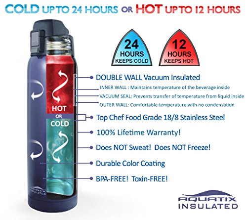 -. Title : Aquatix Flip Top Double Wall Insulated Stainless Steel Sports Water Bottle (Midnight Blue, 32-Ounce)