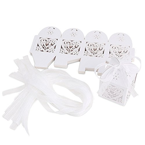 -. Binding : Kitchen -. Brand : UNIQLED -. Feature : Material: Pearlecent art paper; High-grade characteristics wedding/holiday paper hollow-out decorative products. / Hollow out Love Heart design favor boxes, come with free ribbon. / Flat paper packaging, easy to assemble them into the the box by yourself. / Approx. Box Dimensions: 2 x 2 x 2.75inch / 5 x 5 x 7cm (L x W x H). / Perfect for wedding, birthday, bridal shower party. -. IsAutographed : 0 -. Label : UNIQLED -. Manufacturer : UNIQLED -. ProductGroup : Home -. ProductTypeName : HOME -. Publisher : UNIQLED -. Studio : UNIQLED -. Title : UNIQLED Pack of 60 Laser Cut Love Heart Wedding Party Favor Box Candy Bag Chocolate Gift Boxes Bridal Baby Shower Cubic with Ribbons