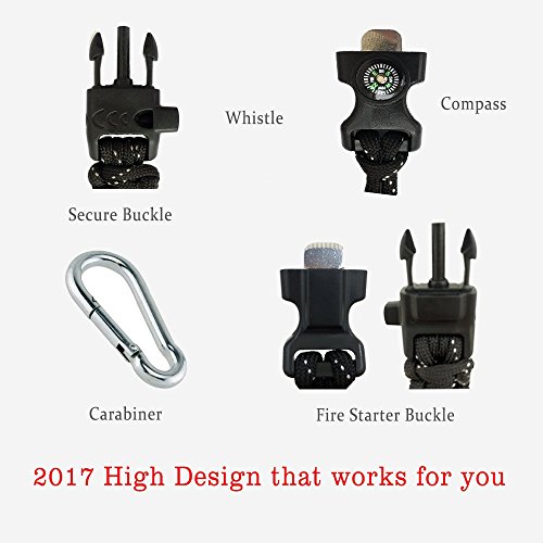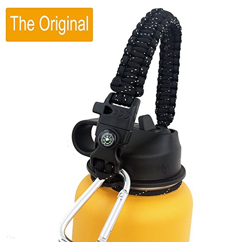 Original Paracord HydroFlask Handle – Compass Plastic Ring Fire Starter Buckle Whistle Carabiner all in 1 Survival Kit for Hydroflask Camelbak & More Width Mouth Water Bottles 12oz - 64 oz