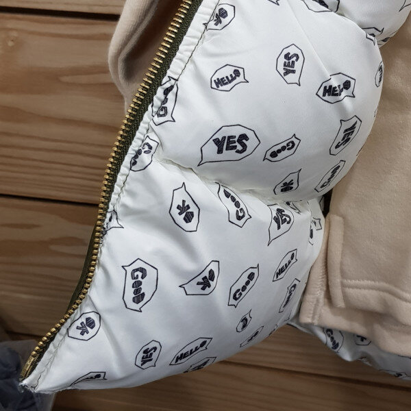 덕다운충전재로 안감전체프린트가 포인트되어있어요.