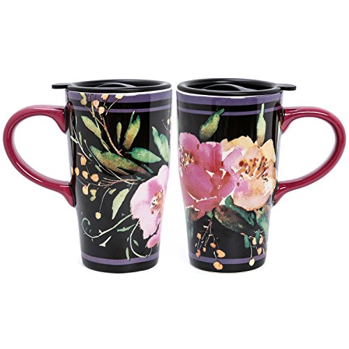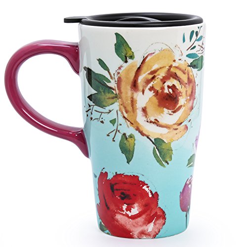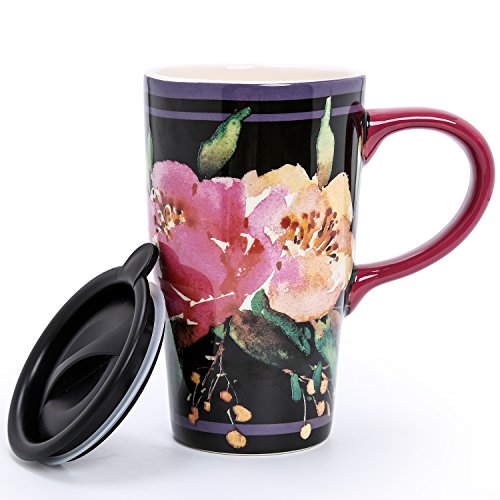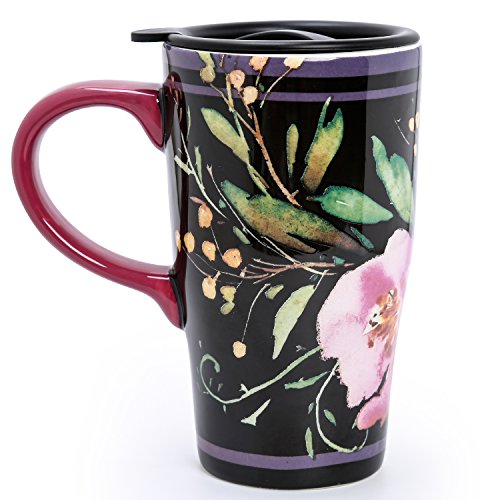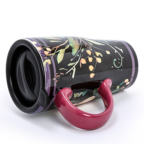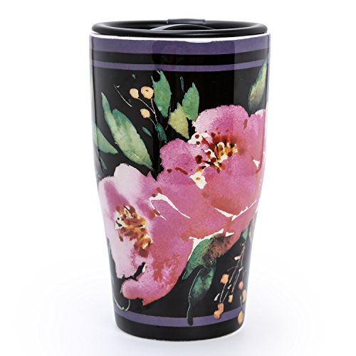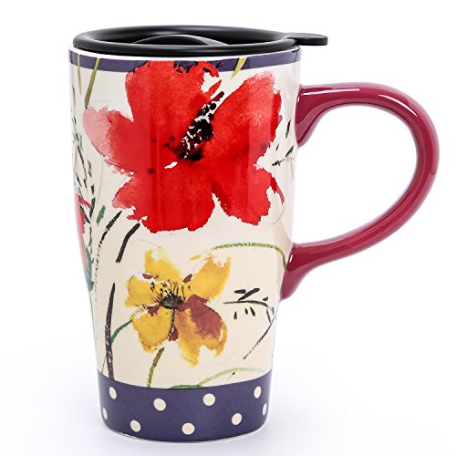 Ceramic body with plastic, spill-proof lid with silicone ring for keeping drinks warm or cold