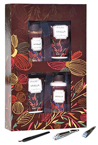 7 PIECE Vanilla Body Bath Shower Spa Mothers Day Gift Box Set for Women Mom Mother in Law Hostess with Manicure Set