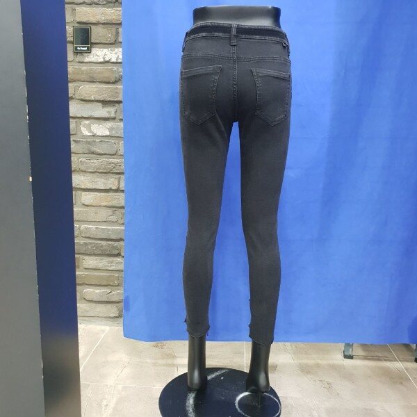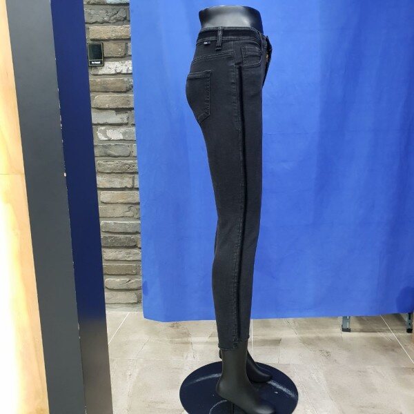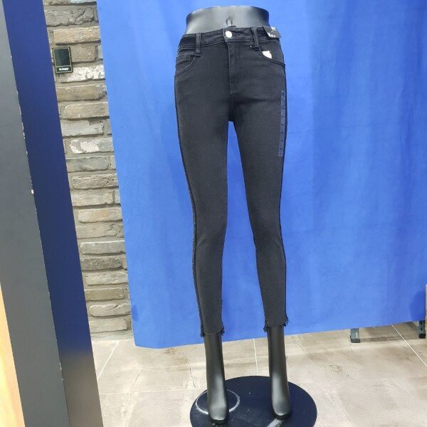 밑위가 편안한 블랙 컴포트 라이즈 크롭 스키니 핏. 허리 밴드 부분과 아웃심을 따라 블랙 벨벳 테이프 장식이 들어가서 세련된 스타일링이 가능한 특별한 데님. 밑단은 길이의 편차를 주어 발목이 돋보일 수 있도록 디자인 됨.( 여성사이즈->64(25),67(26),70(27),73(28),76(29),79(30)입니다.)