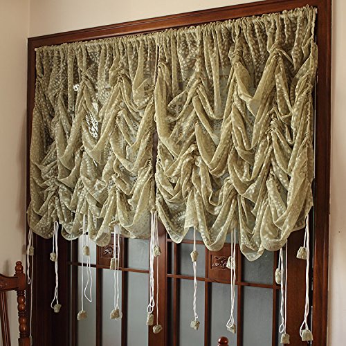 Very beatiful and delicate and luxury balloon curtain,you can use the strings to adjust the height and style,every beautiful style need us carefully regulate,believe you will made the curtain unique at your home.We are the factory to made these curtains, you are the designer of your life and home :)