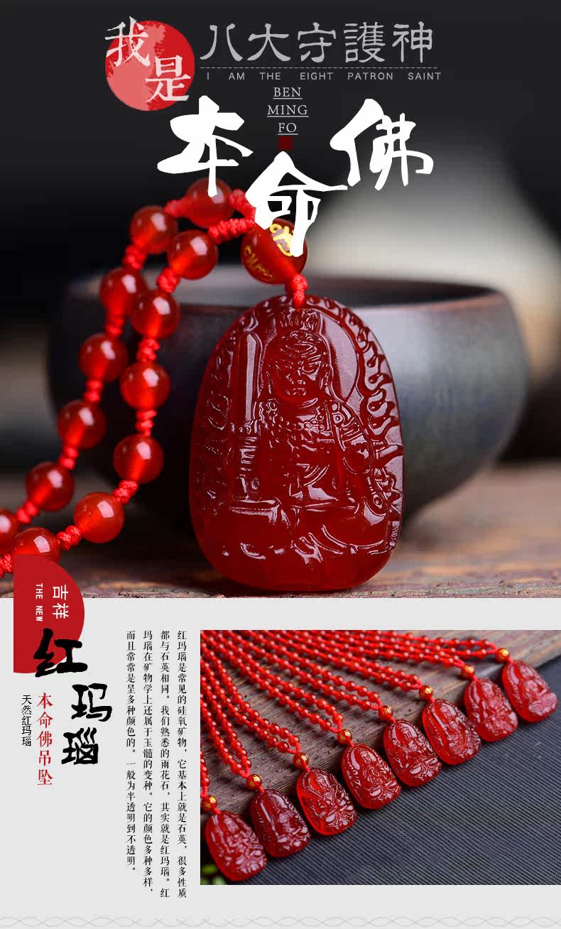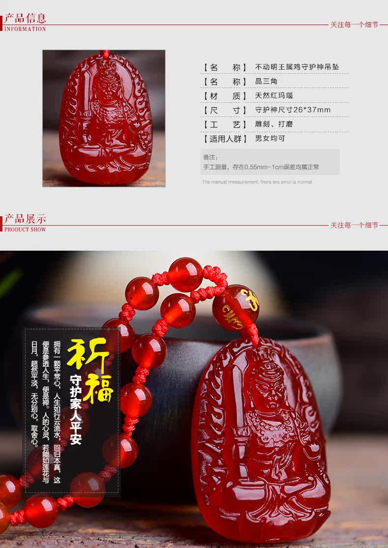 开光天然红玛瑙不动尊菩萨生肖鸡守护神吊坠本命佛不动明王项链
