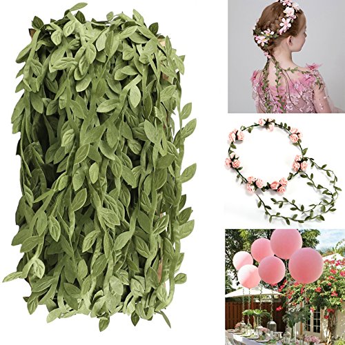 - ☀【High Quality】:Artificial Vine are naturalistic look. Total length is 132 feet, each leave measures 0.39 inch.Fabric material without weird smell ,waterproof, durable and washable.Compared with fragile nylon ribbon, the fabric ribbon is strong and hard to pull apart.
