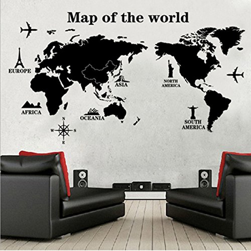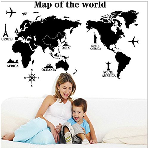 Wall Decals Stickers,Kredy "World Map"3D Home Kids' Room Wall Décor Removable DIY Wall Decal Sticker Art Mural for Kids Boys Girls Bedroom Living Room Office (Black)