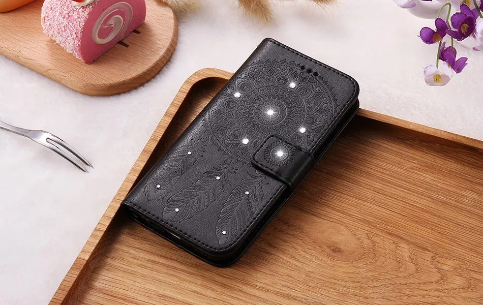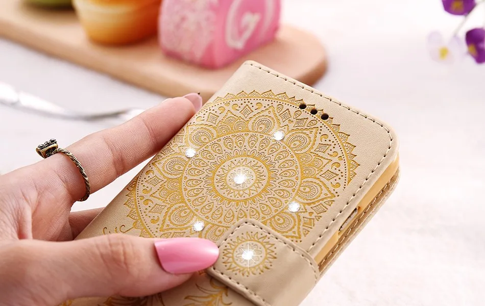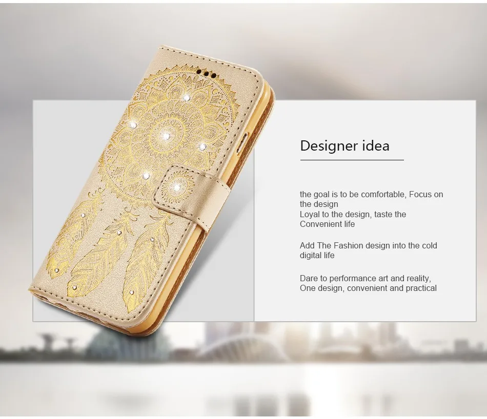 Feature 1:Bling Glitter Rhinestone+ PU Leather Flip Wallet Case Cover