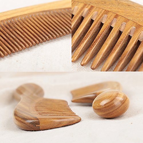 Wood comb, wide tooth comb ,nature Green sandalwood comb hand made 100% nature hair comb Anti static wide tooth hair comb fine tooth hair comb Scalp...