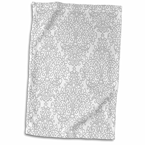 3D Rose Grey and White Damask-Gray Elegant Silver Swirling Victorian Stylish Traditional Pattern Towel, 15" x 22"