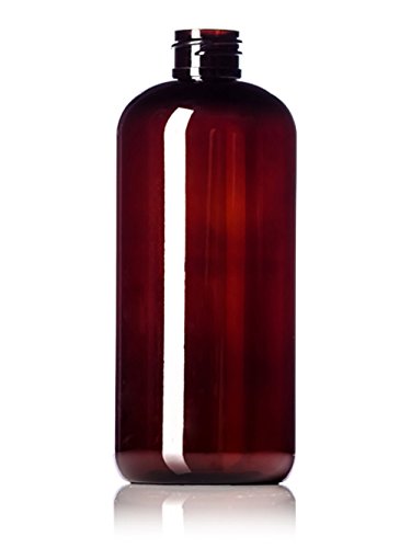 16 Ounce Amber PET Boston Round Bottle with Hand Pump includes Gift Card [Pack of 3]