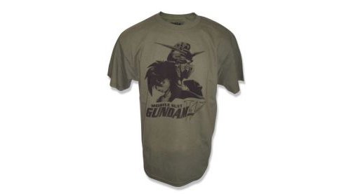 Official Gundam Wing t-shirt. Front of the shirt features Heero and Wing Gundam. Standard adult men size shirt. Color: Military Green. 100% cotton. Made in the USA.