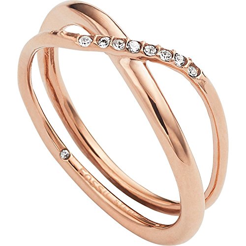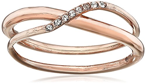 Polished steel rose gold-tone-tone ring with crossover detail and clear crystal pavé
