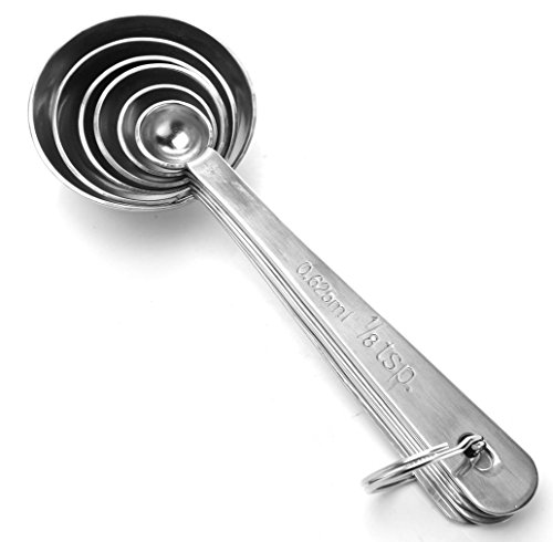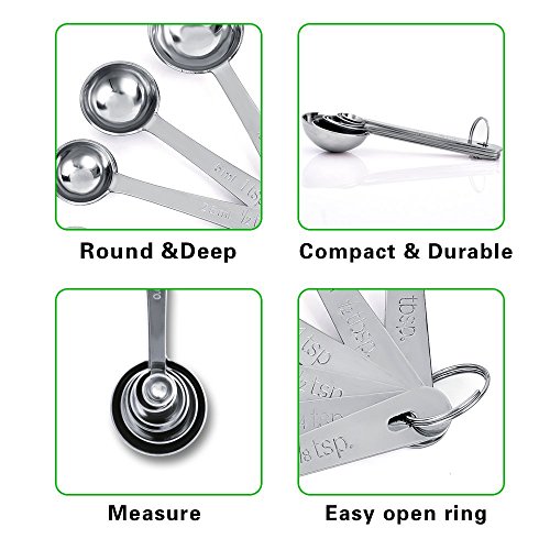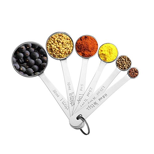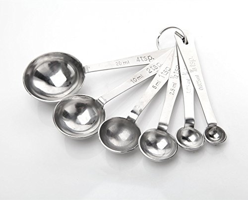 - ☆Accurate measurements are essential for great results when cooking and baking. This set has the proven accuracy you need with the 6 most used spoon sizes: 1 tablespoon (20 ml), 1/2 tbsp (10 ml), 1 teaspoon (5 ml), 1/2 tsp (2.5 ml), 1/4 tsp (1.25 ml) and 1/8 tsp (0.6 ml). Cook and bake with confidence with these commerical quality measuring spoons designed for everyone who loves great tasting food.