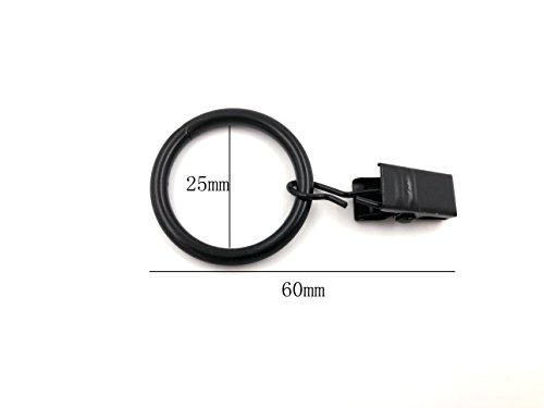 32 Pieces Metal Drapery Curtain Rings with Clips (Pack of 32, Black)