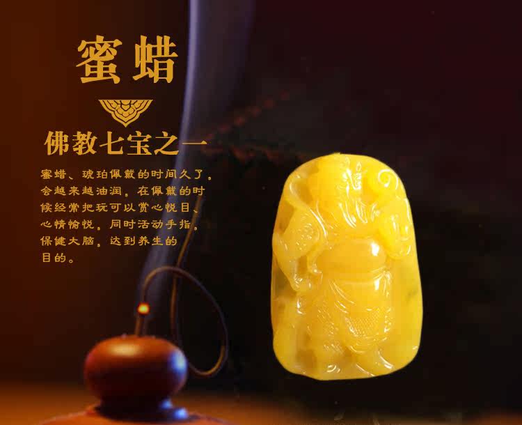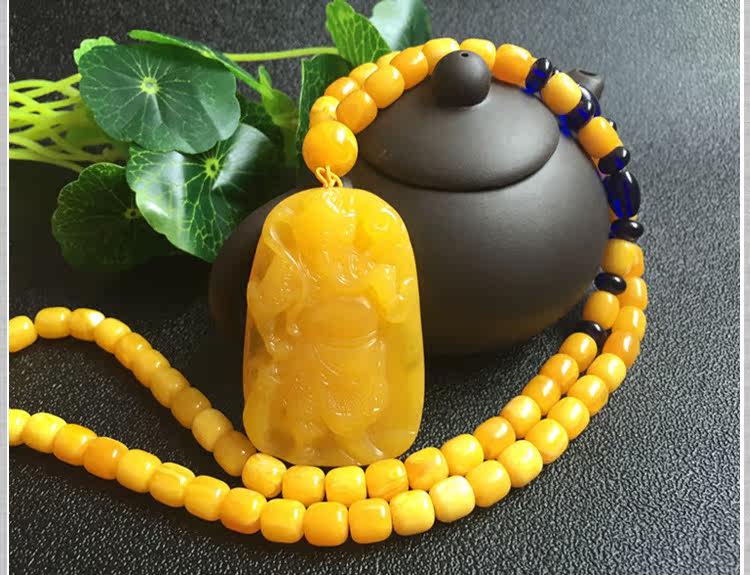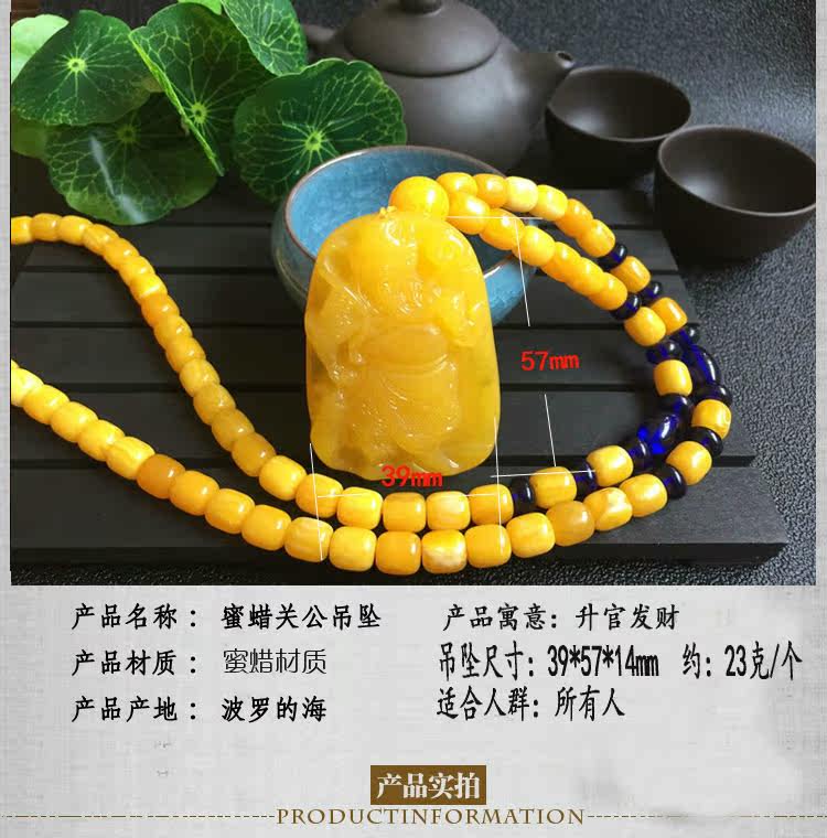 老蜜蜡吊坠 鸡油黄蜜蜡吊坠关公款毛衣链项链琥珀吊坠女款