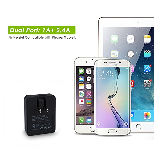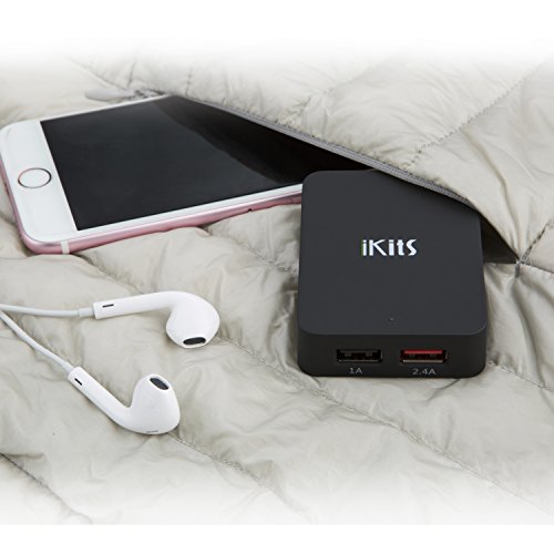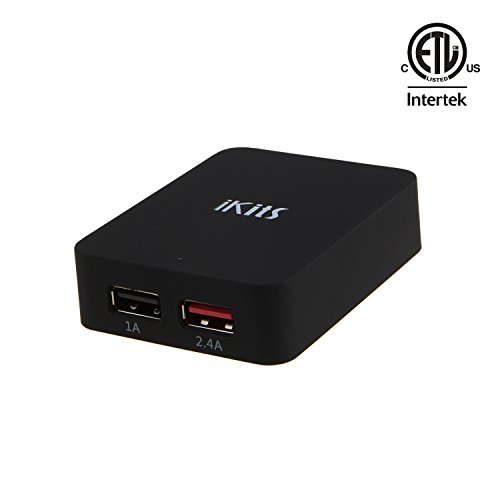 iKits (ETL Listed) 3.4A 17W Dual USB Wall Charger with Smart IC Technology, 2 Port Portable Travel Charger with Foldable Plug for iPhone 7/6s, iPad Air 2 / mini 3, Galaxy S7 / Note 5 and More