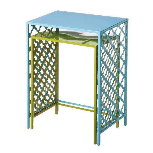 -. Title : Cape Craftsmen 8SSM035 Evergreen Green And Blue Metal Nested Side Tables (Set of 2)