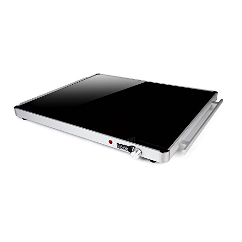 Measures an X-Large 24" x 20" - With wide easy to use handles and a high quality glass top.