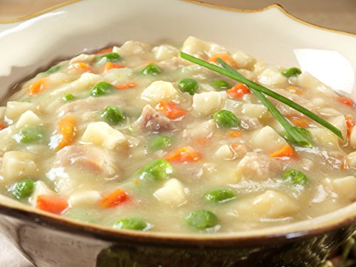 A tasty and hearty stew with chunks of chicken and vegetables in a thick cream sauce