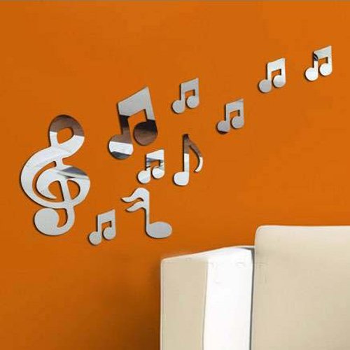 Alrens(TM) 10pcs Romantic Music Notes Pattern Acrylic Mirror Wall Sticker 3D DIY Home Decoration Living Room Bedroom Dancing Room Fashion Decor Decals Art