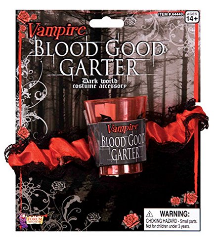 -. Binding : Apparel -. Brand : Forum Novelties -. Department : womens -. Feature : Vampire Blood costume garter / Satin and lace garter with shot glass / Standard size fits most women, up to a size 12 / Additional accessories and costume pieces sold separately / Made by Forum Novelties, a leader in costumes and novelty products for more than 30 years -. Genre : Hosiery & Leg Warmers -. IsAdultProduct : 0 -. Label : Forum Novelties Costumes -. Manufacturer : Forum Novelties Costumes -. PackageQuantity : 1 -. ProductGroup : Apparel -. ProductTypeName : ADULT_COSTUME -. Publisher : Forum Novelties Costumes -. Studio : Forum Novelties Costumes -. Title : Forum Novelties Women's Vampire Blood Good Garter Dark World Costume Accessory