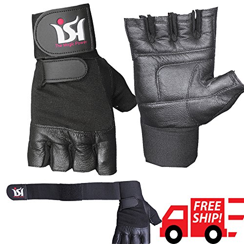 -. Title : Gym Weight Lifting Leather Gloves Long Wrap Fitness Strength Power Training (Pair) (Large)