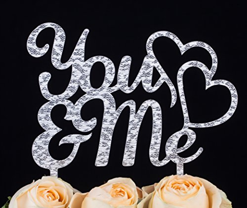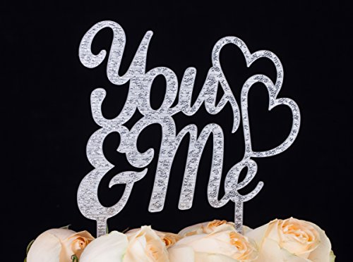 LOVENJOY You and Me Monogram Cake Topper w/ Gift Box (6.3-inch, Silver Glitter)