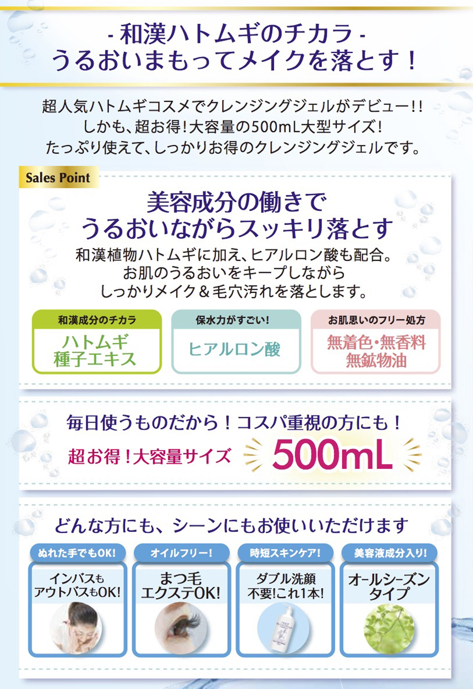 Moisturizing ingredients Pearl oyster seed extract keeps moisturized moisturized skin after cleansing.