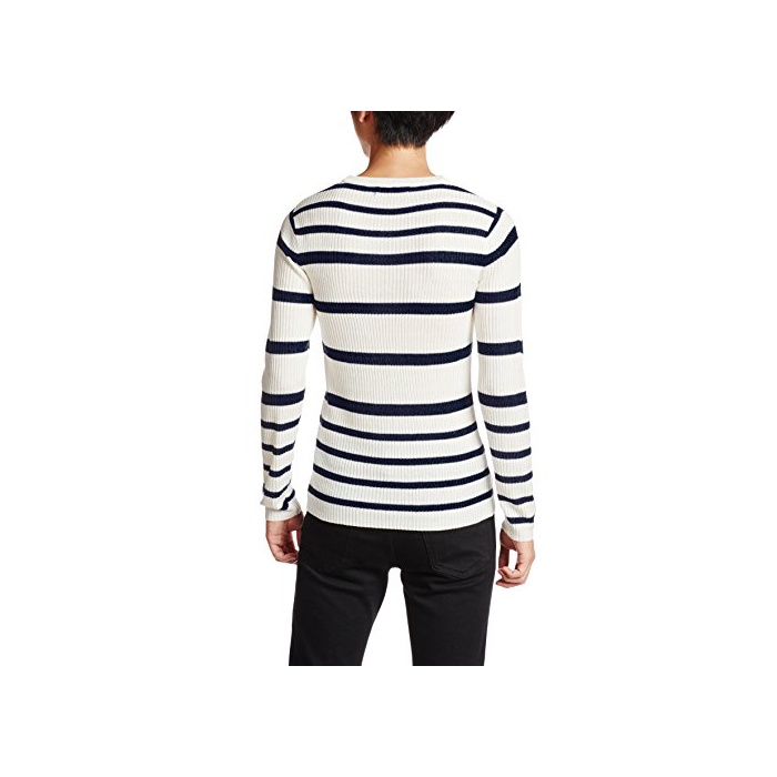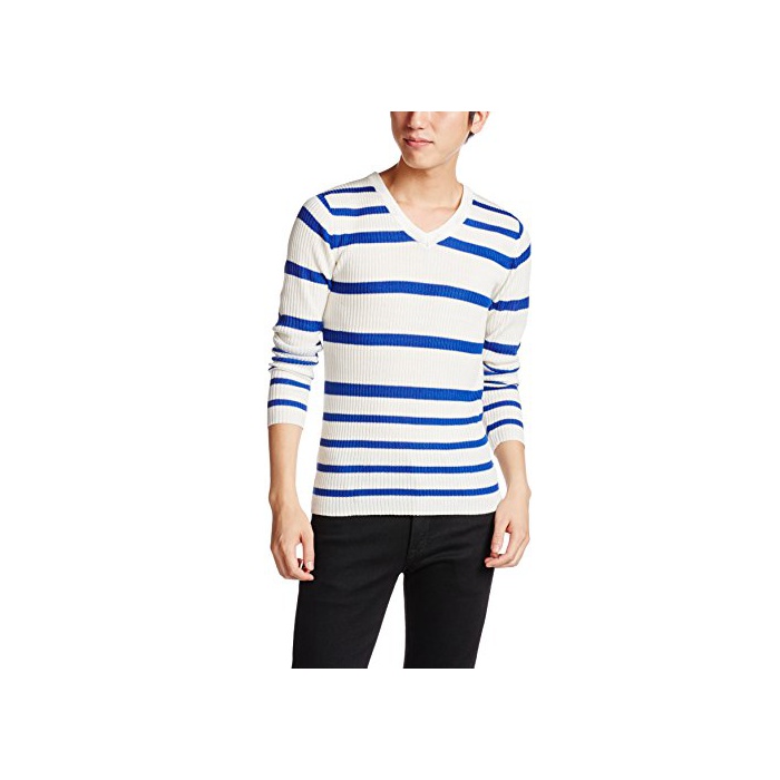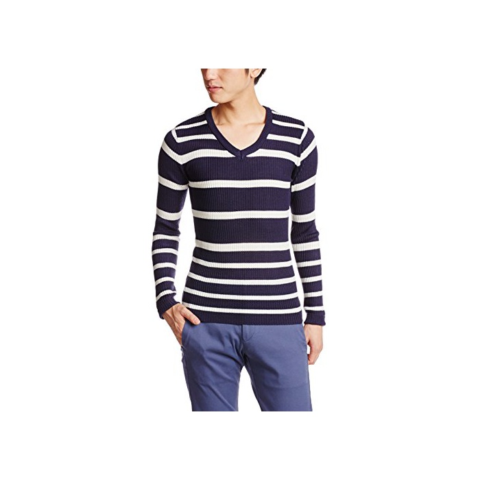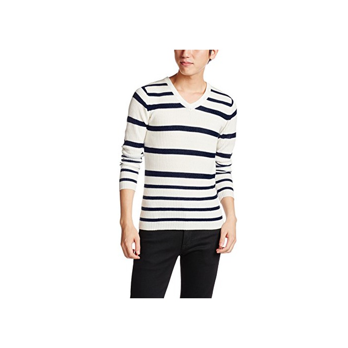 (B 노)BENO 리브 랜덤 보더V넥 니트 530L1635 02 오프×네이비02 M