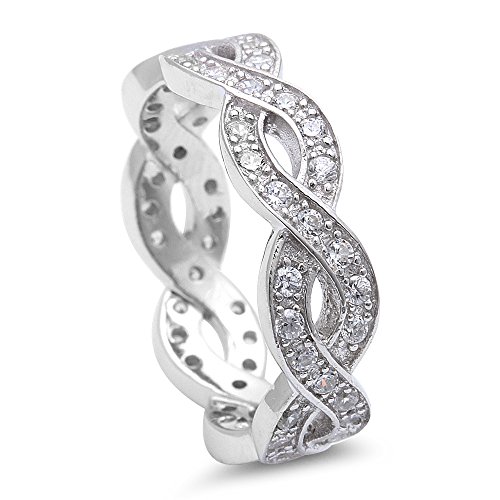 -. Title : Beautiful Cz Infinity Design Eternity Style Band .925 Sterling Silver Ring Sizes 4-11