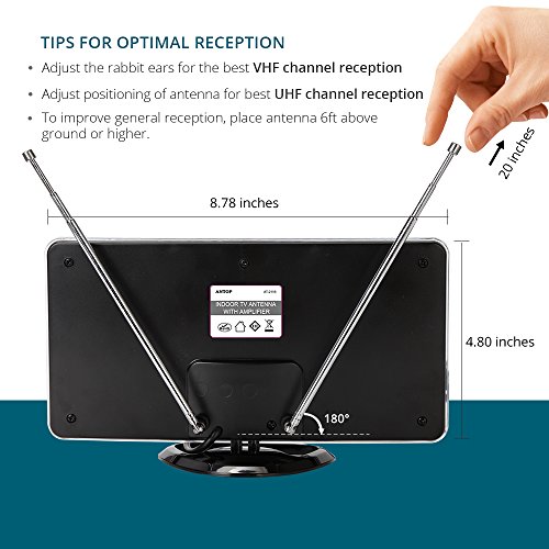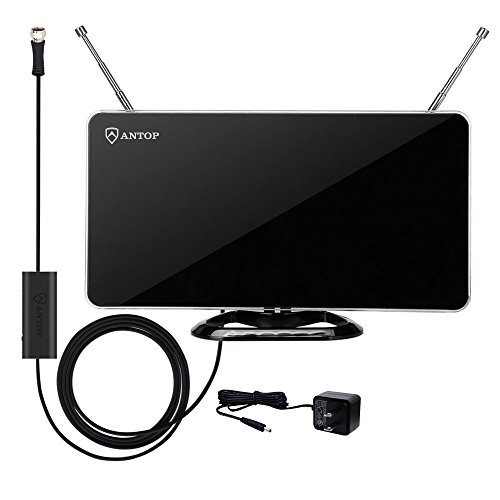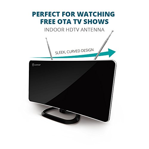 ANTOP 50 Miles Amplified Indoor HDTV Antenna with Inline Amplifier Multi-directional Reception Curved-Panel and Built-in 4G LTE Filter, 10ft Cable AT-211B