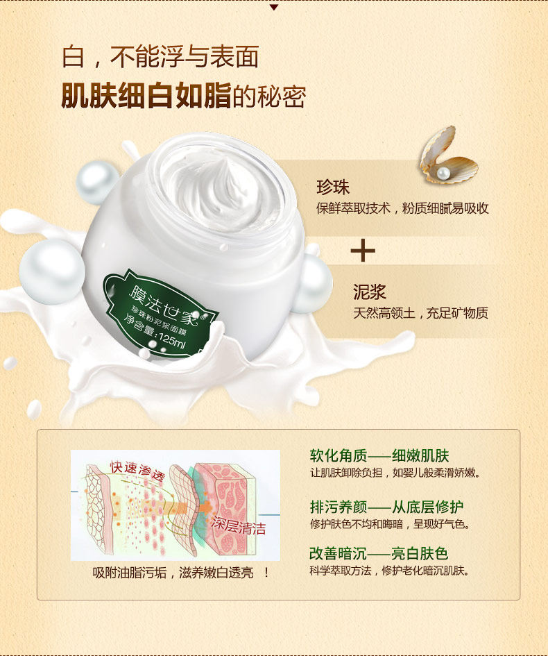 膜法世家珍珠粉泥浆面膜125ml美白保湿控油清洁收缩毛孔正品护肤