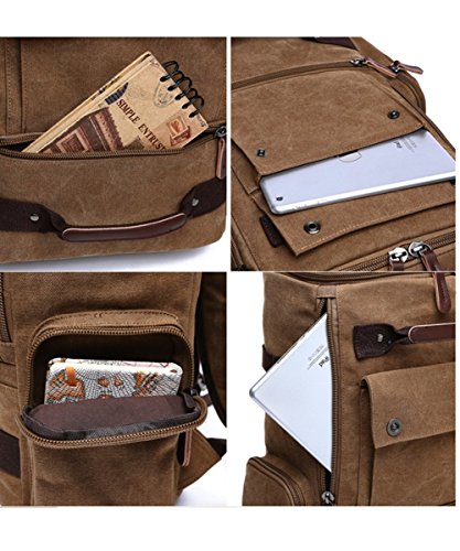 -. Feature : Material: Made of sturdy 16oz canvas, it's avirulent insipidity and Eco-Friendly, you do not need to worry about put the food and clothes on it. Decorate with genuine leather / Plenty of pockets: 6 pockets on the outside, one laptop compartment ( fit 14'' Laptop) and two open pockets on the inside. It's a good size canvas backpack for school, travel, hiking, sports, outdoor and casual daily use. Durable zipper closures and good quality zippers make this bag can work many years. S-shaped padded adjustable shoulder straps make this cool backpack wear comfortable and protect your back when carry something heavy / Large capacity: You can hold notebooks, textbooks, folders filled, kindle, umbrella, clothes and one 14 inch laptop in the main pocket; put your tablet and any smaller things like wallet, keys, phone in the front pockets. It provides ideal storage for overnighters or day trips too / Dimensions: 11.8'' L x 6.7'' W x 18'' H / 30 * 17 * 46cm. It's about 30 L / Warranty: All Yousu bags enjoy 1 year warranty and 30 days free return for no reason
