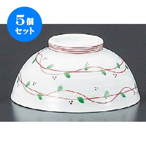 원본상품명: 5個セット 飯碗(磁器)?化 赤?つる草飯碗 [113 x 53mm] ?化 和食器 料亭 旅館 ?食店 業務用