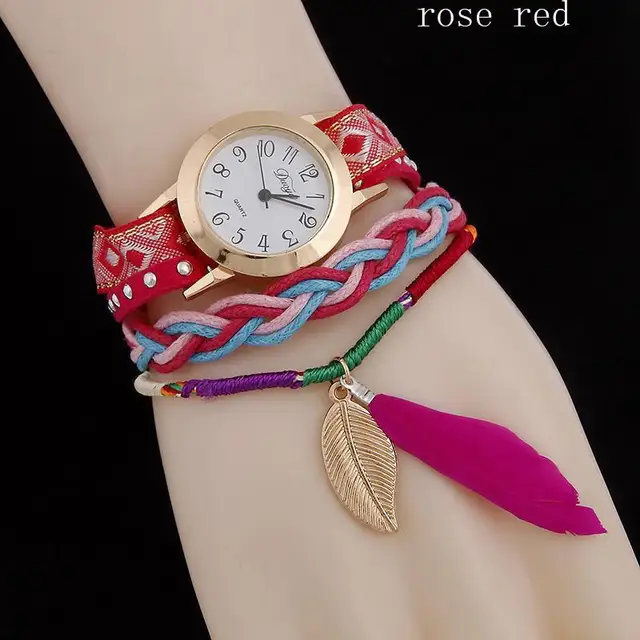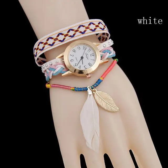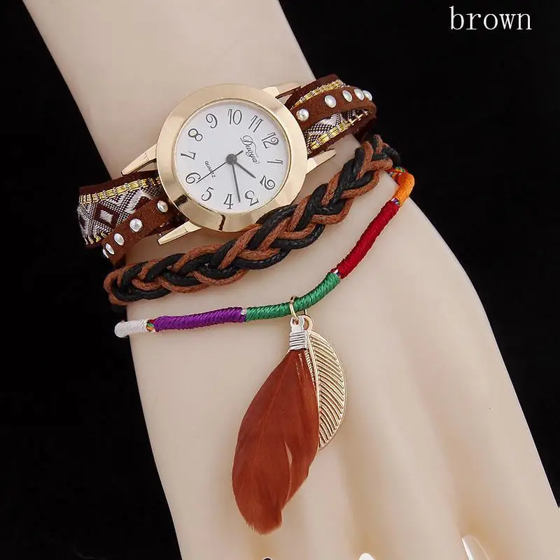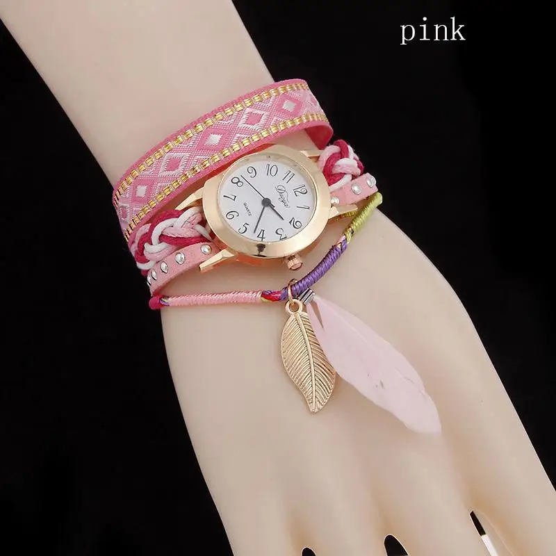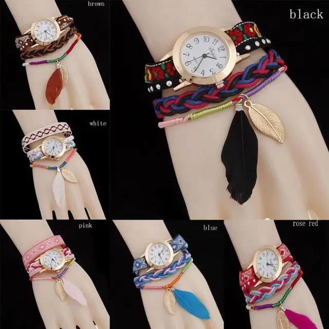 | [해외] 1 개 2017 새로운 패션 브랜드 여성 숙녀 팔찌 시계 시계 깃털 펜던트 석영 손목 시간 직조 벨트 선물 H3 |