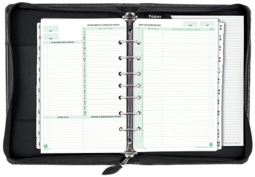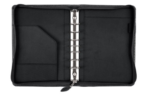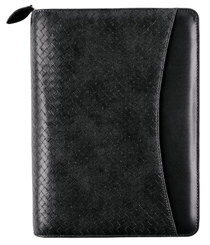 -. Feature : Black woven-look simulated leather binder with seven 1"-rings and zip closure; desk size 4 pages are 5-1/2" x 8-1/2" / Includes our standard Starter Set components: 3-month sample of 3 popular calendar formats, tabbed add/phone directory, note pad, business/credit card holder, tabbed monthly dividers, reference pages, vinyl zip pouch, and a page locator / Large pocket on front and multiple interior pockets for storage as well as a pen loop; 10.5 x 7.75 x 1.5 Inches binder has seven 1 Inches rings to hold 5.5 x 8.5 Inches pages