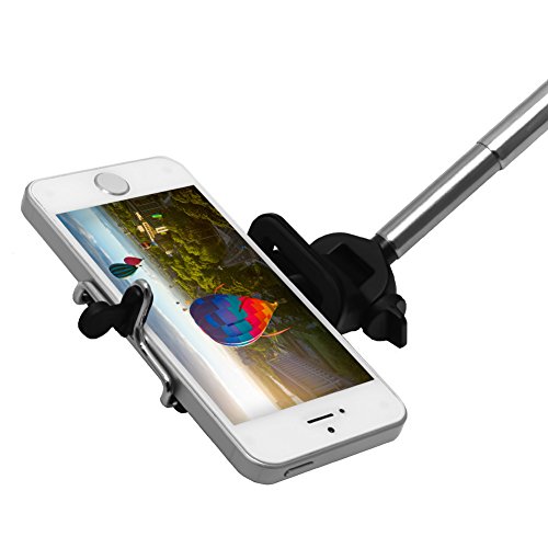 FAST AND EASY WITH NO BLUETOOTH OR BATTERIES TO WORRY ABOUT: The SelfieReacher is designed with a built in push button to eliminate the possibility of constantly needing to change batteries. You do not have to wait for Bluetooth pairing with your new selfie holder. Just plug in and start shooting photos.