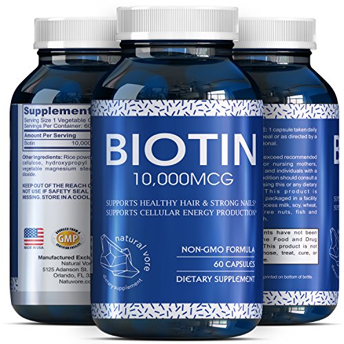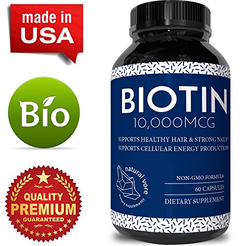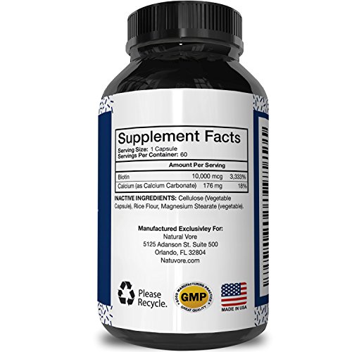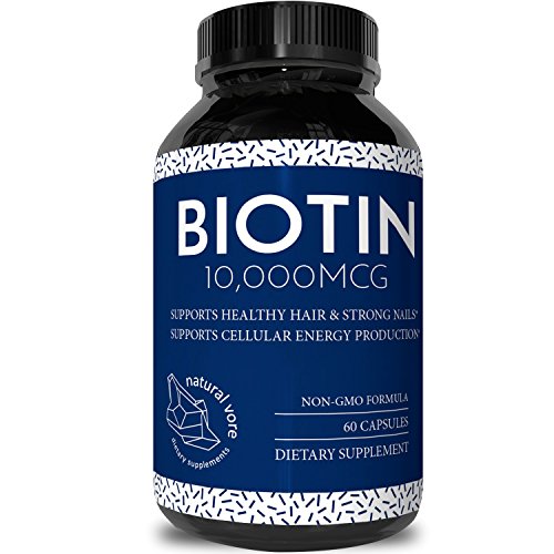 -. Binding : Health and Beauty -. Brand : Natural Vore -. EAN : 0806810458693 -. Feature : LONGER STRONGER THICKER - Hair with body - less breakage for shinier + more light reflective hair - natural split end treatment helps new growth - your own before and after - noticeably lustrous hair / WHOLE BODY HEALTH - Biotin is a B complex vitamin - inner vitality shows up in hair skin + nails - convert food + carbs + glucose into energy + fuel - low carb diet supports an even higher metabolism / BIGGER DOSE - 10000 mcg - double 5000 mcg - quick absorption of high quality bioavailable Biotin + glowing beautiful appearance - happy customers love the potent purity + biologically active Vitamin B / BETTER SKIN + NAILS - Simple beauty advice from doctors + experts - extra strength biotin to support growing nails longer - clearing skin on face + body - glow + get noticed with our veg + veggie caps / BEAUTIFY THE ORGANIC WAY - Vegetarian pills help thicken hair + detangle hair + clarify hair follicles + make for easier hair care - nourish yourself inside first - it will show in your appearance -. IsAdultProduct : 0 -. Label : Natural Vore -. Manufacturer : Natural Vore -. MPN : LE -. PackageQuantity : 1 -. PartNumber : LE -. ProductGroup : Health and Beauty -. ProductTypeName : HEALTH_PERSONAL_CARE -. Publisher : Natural Vore -. Studio : Natural Vore -. Title : Pure Biotin Supplement - Get Thick Shiny Hair - Strong Nails - Hair Growth + Clear Skin - 10000mcg All Natural Vegetarian Vitamin Capsules - For Men + Women with Hair Loss or Thinning -. UPC : 806810458693